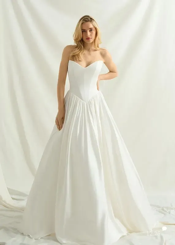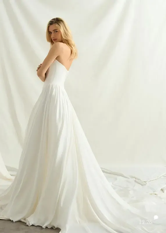 Du suchst ein Brautkleid dass lässig und elegant zugleich ist? Das ist es! Der Ausschnitt ist so elegant und doch ein wenig sexy. Die Taille ist länger geschnitten, so wie es aktuell im Trend ist. Und der Rock hat eine schöne A-Linie und ein schönes Volumen. Ich lieb's jetzt schon! Du auch?
