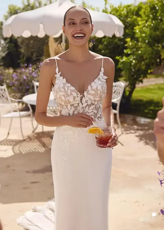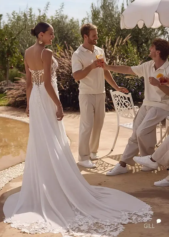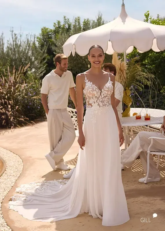 GILL ist besonders und schlicht zugleich. Die Träger sind ganz zart und die zarte Schnürung im Rücken liegt absolut im Trend.