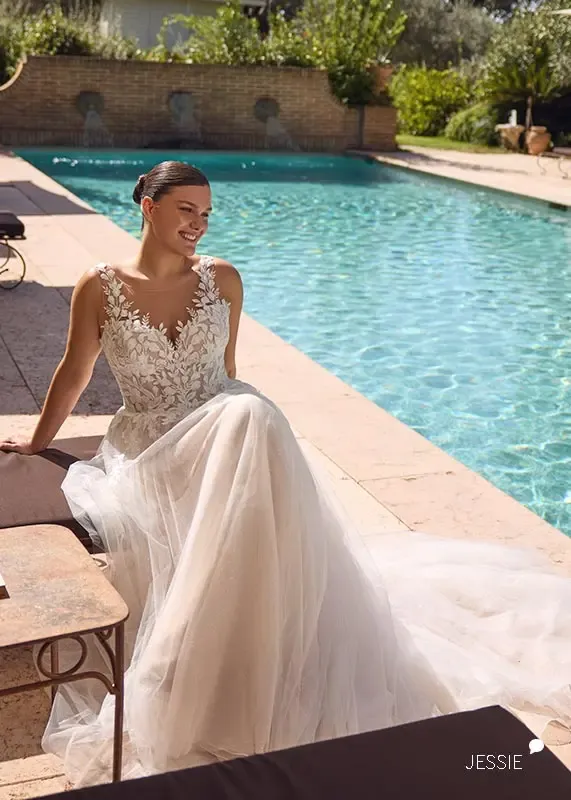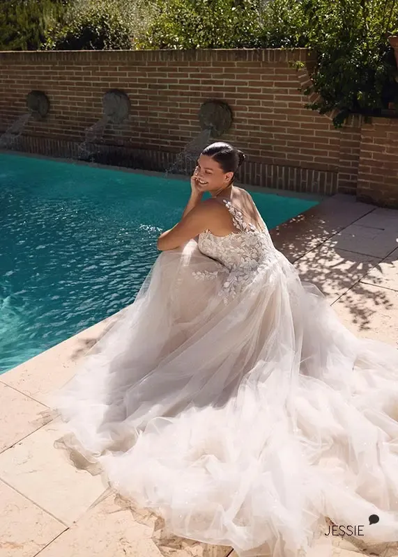 JESSIE ist ein Traum aus Tüll und Spitze. Der Ausschnitt ist moderst tief. Der Halt ist ausgezeichnet und auch mit etwas mehr Brust und tiefen Rückenausschnitt kein Problem. Liebe ich jetzt schon.