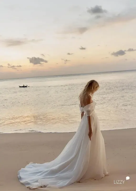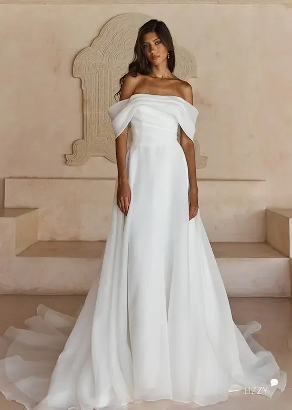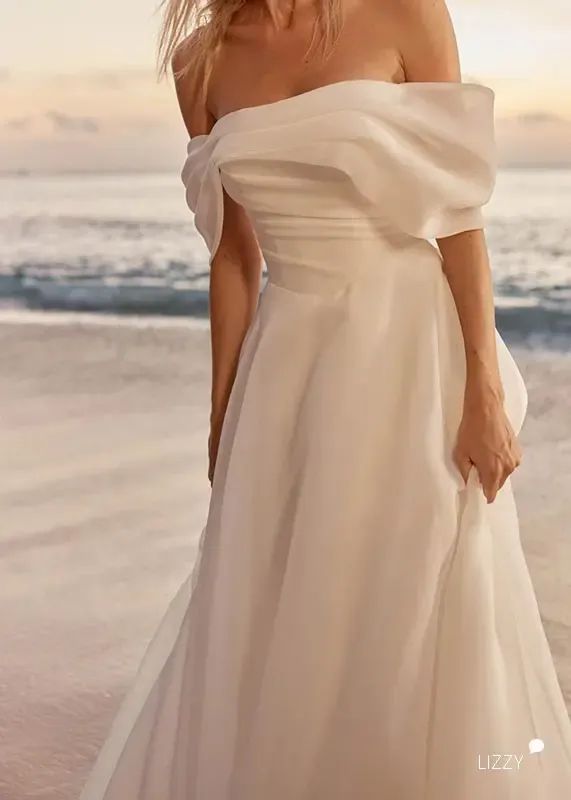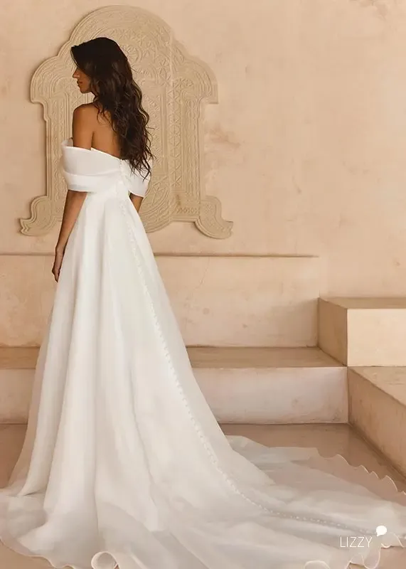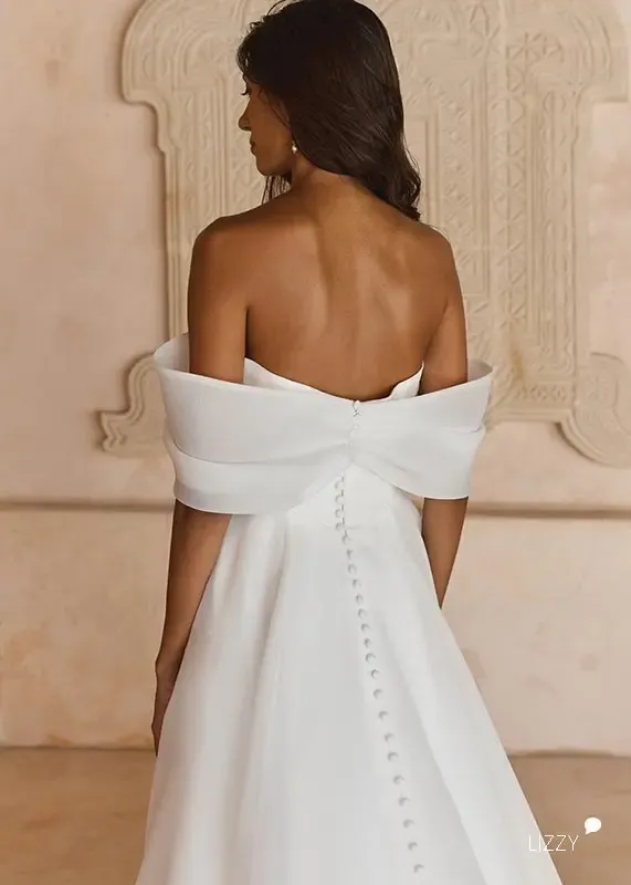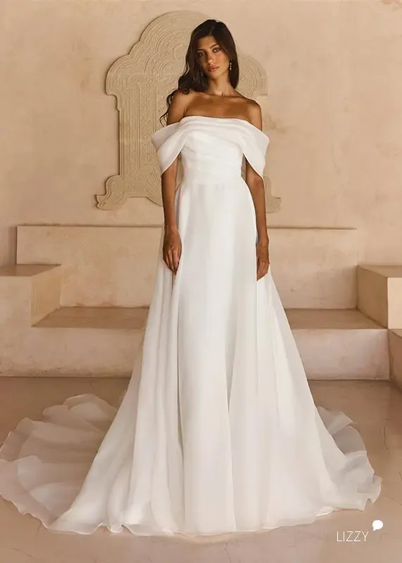 LISSY von Madi Lane ist ein klassisch gehaltenes trägerloses Brautkleid mit Carmenträgern und einer markanten RAffung im Oberteil. Es ist soooo weich und leicht. Sehr feminin und die A-Linie hat eine perfekte Weite.