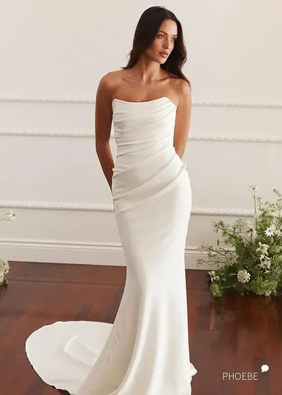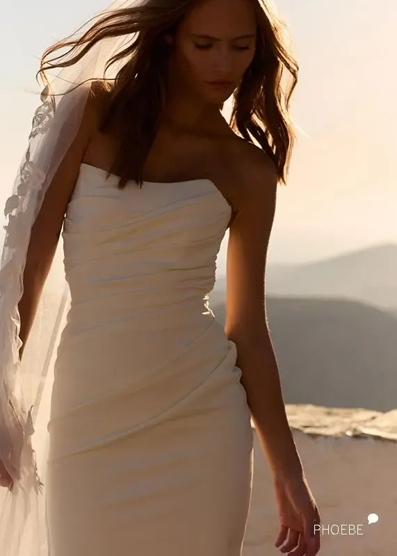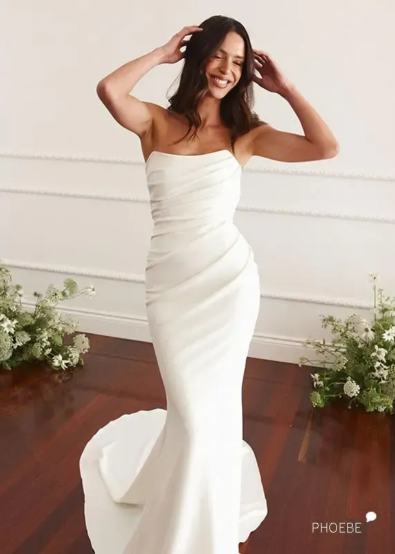 PHOEBE von Grace Loves Lace kommt ganz ohne Spitze aus! Und ja, es ist sogar das erste trägerlose Kleid, dass GLL jemals designt hat! Und es ist einfach mega geworden! Keine tiefen Ausschnitte, ein perfekter Halt und die Tragbarkeit sind so, wie man es für ein GLL Brautkleid erwartet. Liebe ich auch gemeinsam im Look mit dem Rio Cape ;)