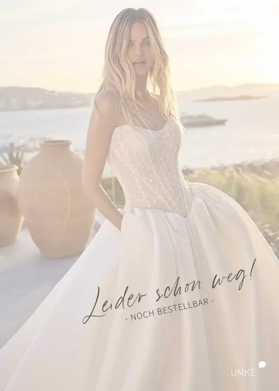 Modeca ist eine niederländische Marke mit über 75 Jahren Erfahrung im Brautmodenbereich, was sich in ausgefeilten Konstruktionen und hochwertigen Stoffqualitäten zeigt. Außerdem wird bei Modeca zunehmend moderne Eleganz mit Understatement kombiniert – ideal, wenn du luxuriös wirken willst, ohne übertrieben zu sein.